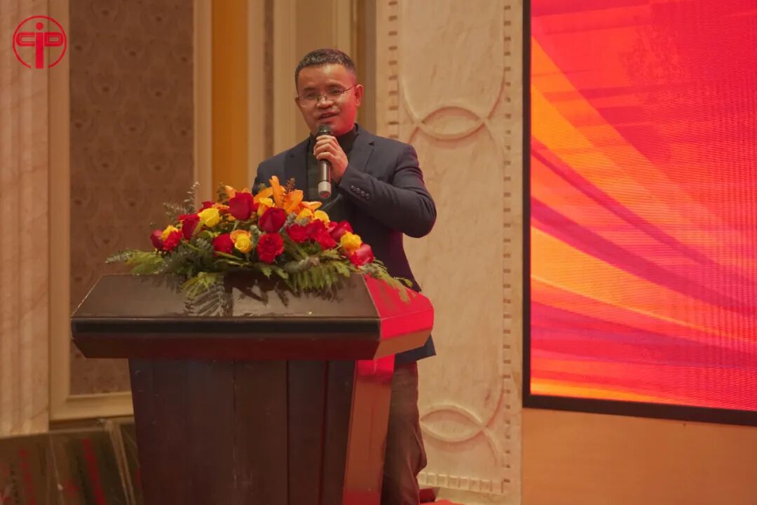 成都室内装饰行业协会副会长-四川鑫佰利装饰有限公司董事长程新哲发言。他首先感谢协会多年来对企业的帮助和支持,同时也表达了一个老会员企业对协会工作的认同以及归属感。程会长站在行业头部企业的高度,用数据分析了行业现状和趋势,他首先表明公司会继续深耕装饰行业,其次,再放眼全球经济现状,比较成都在全国的社会经济发展重要地位以及未来几年的良好前景,归纳总结出在现在的经济环境下,装饰企业不适合进行大规模的扩张。